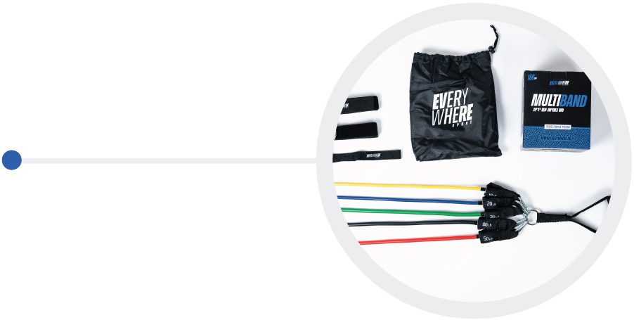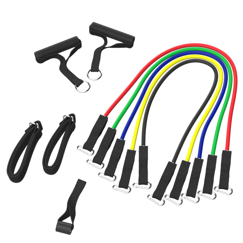 מארז 5 גומיות צינור הכולל ידיות ורצועות קרסול לחיבור מהיר, עוגן לדלת ותיק נשיאה.