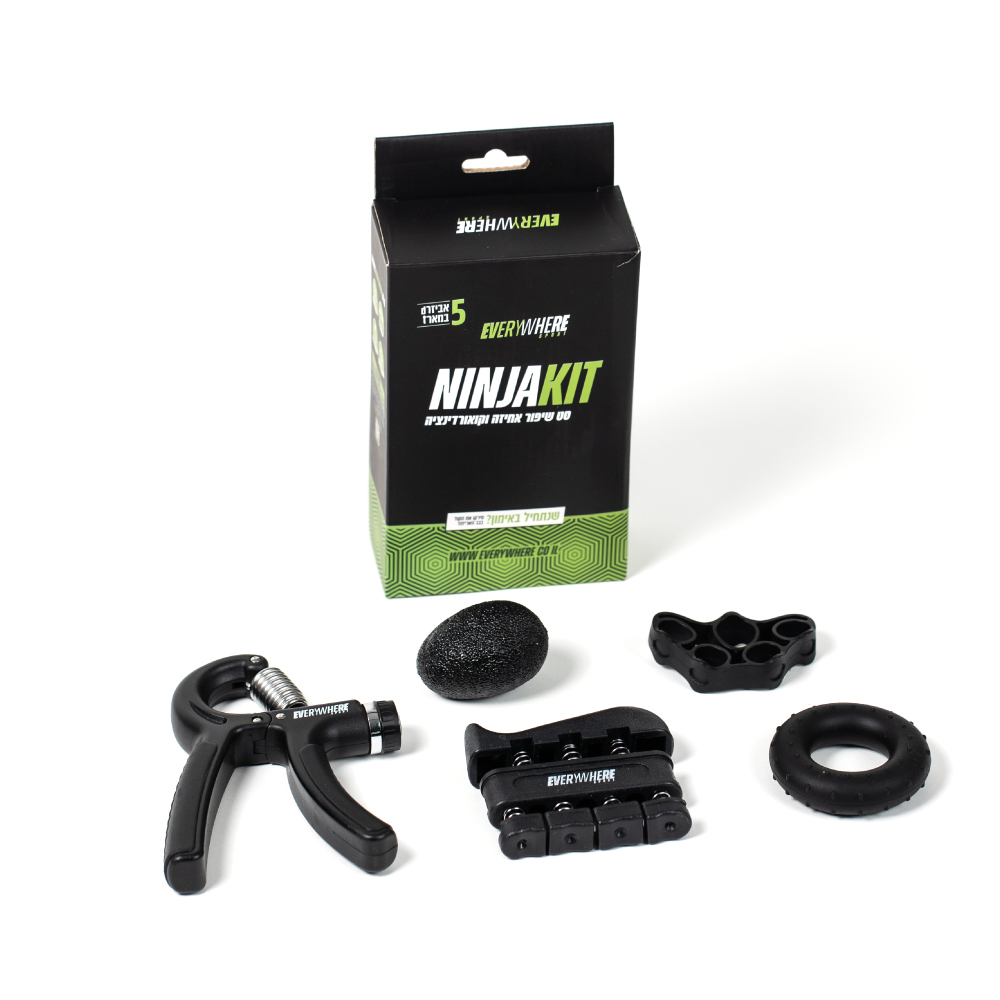 סט הכולל 5 אביזרים לחיזוק שורש כף היד והאמהלשיפור האחיזה והקורדינאציה – בכל מקום!